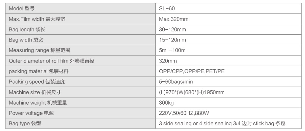 從填充,稱量,制袋,封口,日期打印一次性完成。